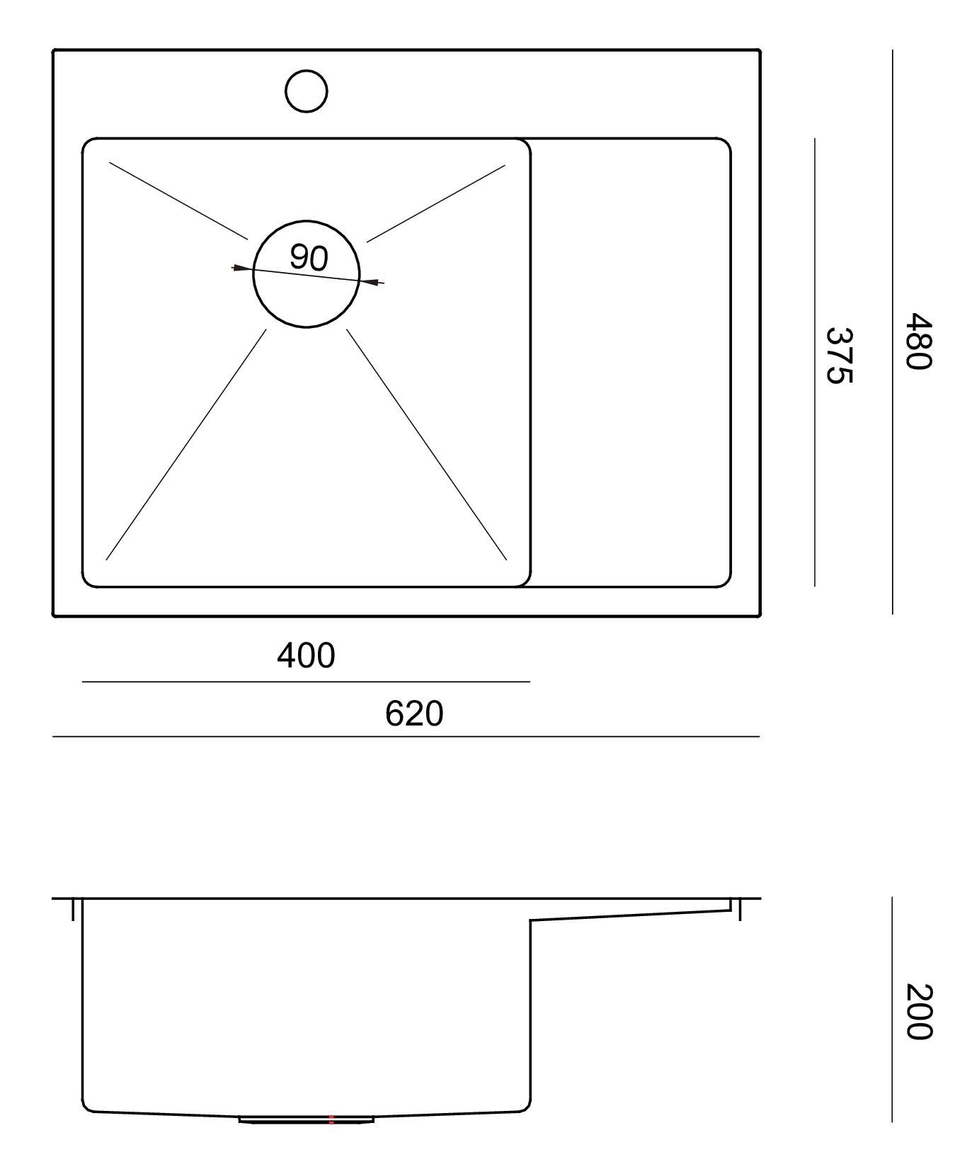 RUSSEL 116 LEWY Zlewozmywak jednokomorowy ze stali szlachetnej | 620 x 480 |