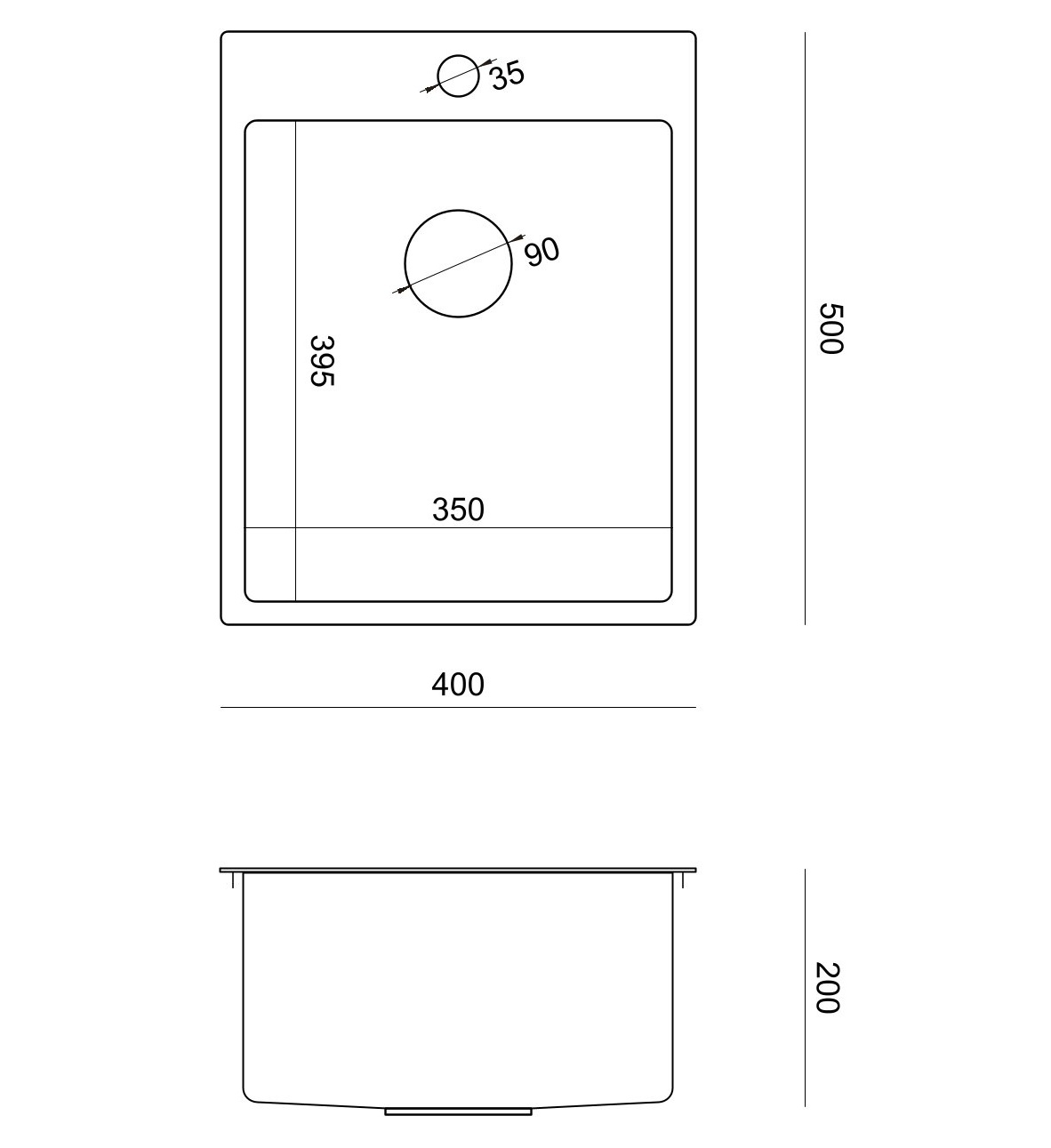 RUSSEL 90 Zlewozmywak jednokomorowy ze stali szlachetnej | 400 x 500 |