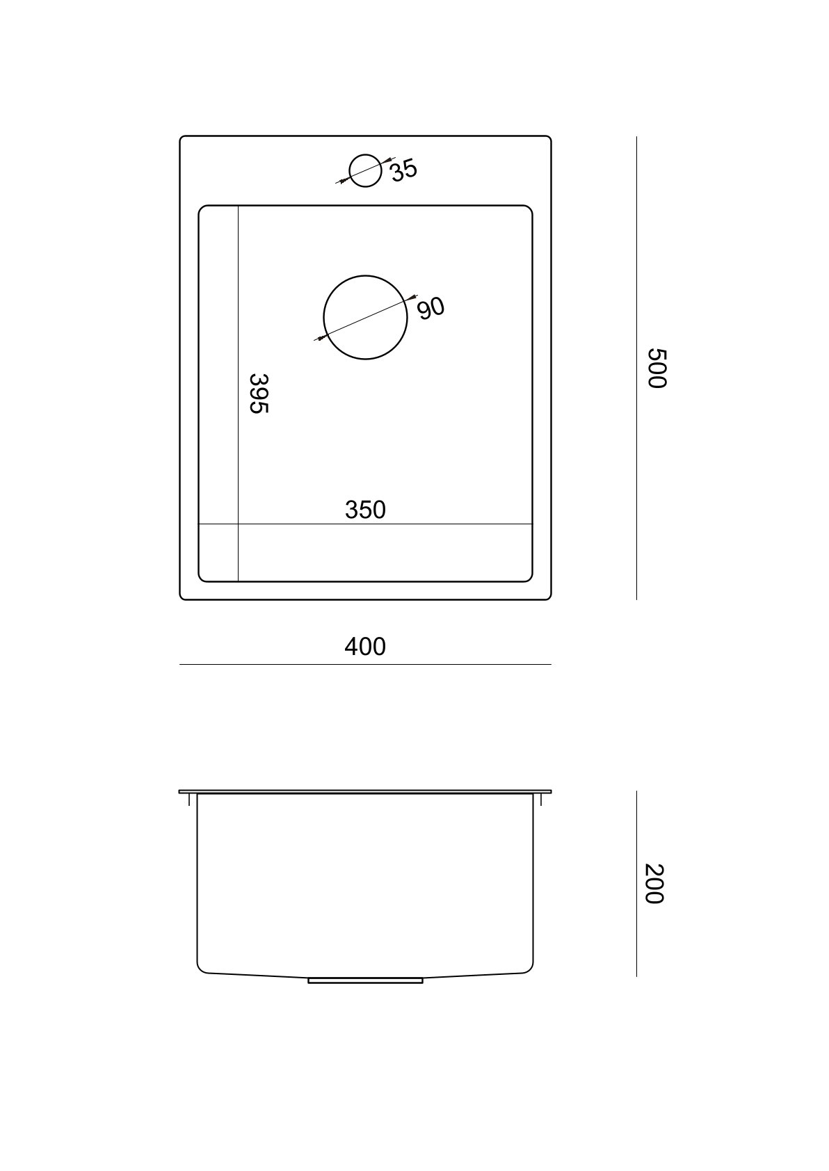 RUSSEL 90 Zlewozmywak ze stali szlachetnej - jednokomorowy 400 x 500