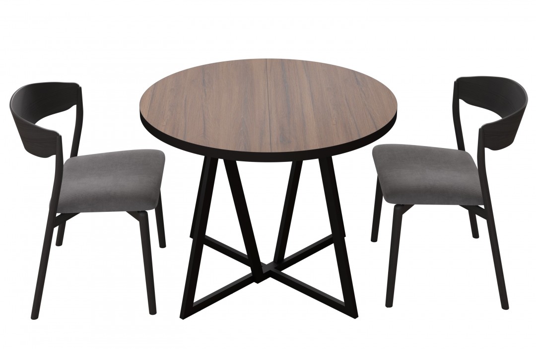 Vikam VB 2 to nowoczesny okrągły stół rozkładany do kuchni i jadalni, zaprojektowany z myślą o funkcjonalnych i estetycznych wnętrzach. Czarny, metalowy stelaż z blatem w dekorach dopasowanych do frontów mebli kuchennych Kam.