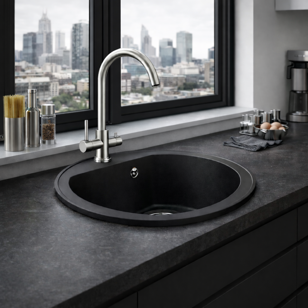 DITTO RING to nowoczesny okrągły zlewozmywak granitowy, który łączy ponadczasowy design, wysoką trwałość i maksymalną funkcjonalność. Idealny wybór do kuchni klasycznych, nowoczesnych i minimalistycznych. Okrągła forma optycznie powiększa przestrzeń roboczą, a granitowa powierzchnia zapewnia odporność na codzienne użytkowanie.