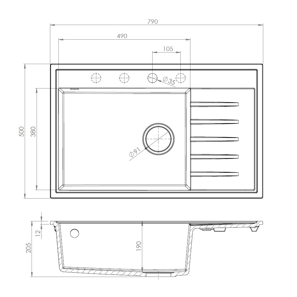 - Typ zlewozmywaka: 1-komorowy z ociekaczem