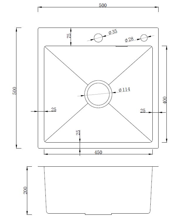 MASIVO 50 PVD GRAFIT Zlewozmywak jednokomorowy ze stali szlachetnej 500x500